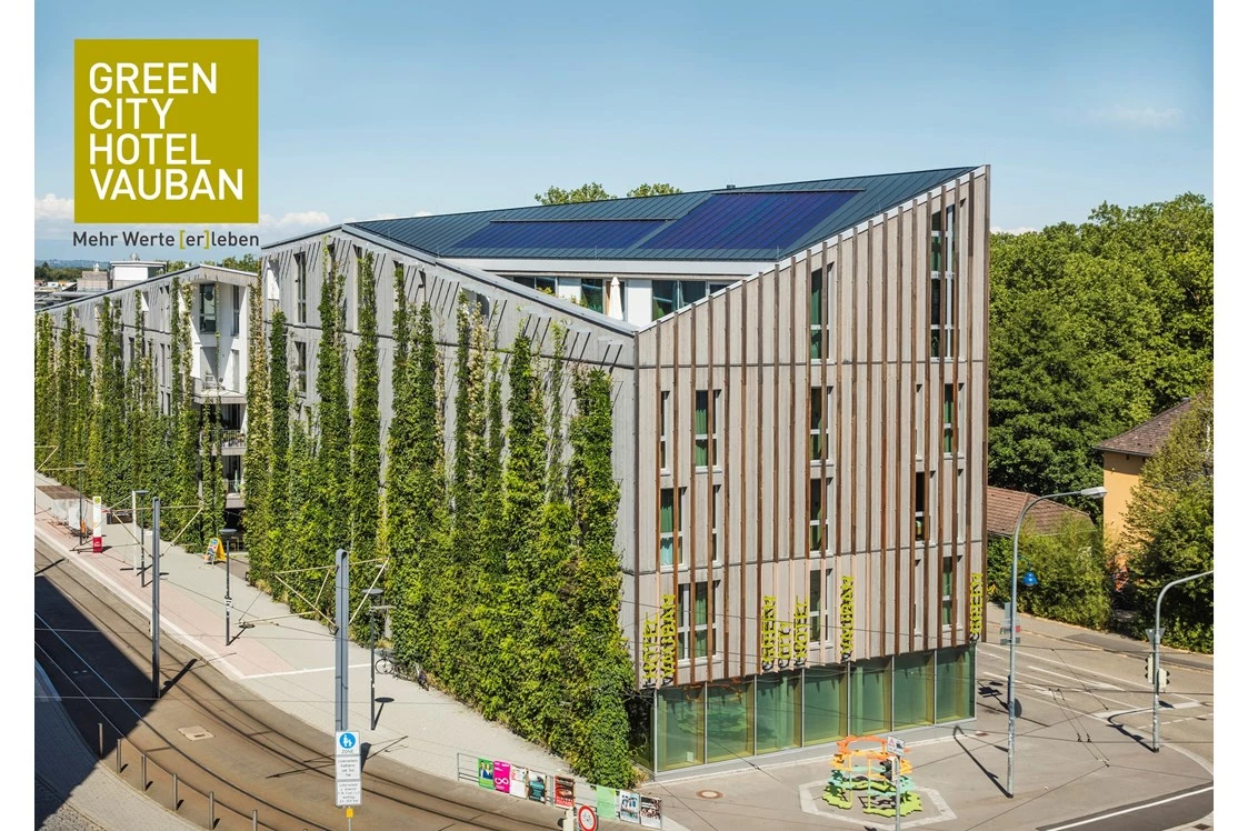 Das Green City Hotel Vauban ist eine ausgezeichnete Wahl für ein Seminarhotel, das Nachhaltigkeit großschreibt. Das Hotel beeindruckt mit einem durchdachten Nachhaltigkeitskonzept, das sich durch verschiedene Maßnahmen und Features auszeichnet. Eine der bemerkenswertesten Merkmale ist die beeindruckende begrünte Fassade des Gebäudes, die nicht nur ästhetisch ansprechend ist, sondern auch zur Verbesserung der Luftqualität beiträgt und das Raumklima reguliert. Das Hotel ist zudem in der autofreien und ökologisch orientierten Stadt Vauban gelegen, die für ihre nachhaltige und umweltbewusste Lebensweise bekannt ist. Neben dem umweltfreundlichen Ansatz bietet das Green City Hotel Vauban auch erstklassige Annehmlichkeiten für Seminare und Tagungen. Moderne und gut ausgestattete Seminarräume, komfortable Zimmer, ein Restaurant mit regionaler und biologischer Küche sowie ein Wellnessbereich zur Entspannung tragen zu einem rundum angenehmen Aufenthalt für die Teilnehmer bei.
